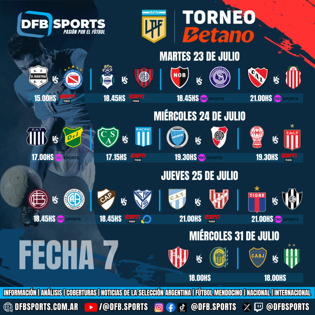 Así se jugará la Fecha 7 del Torneo Betano 2024 de la Liga Profesional
