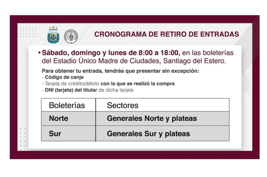 Cronograma para retirar las entradas para el partido de Argentina con Curazao