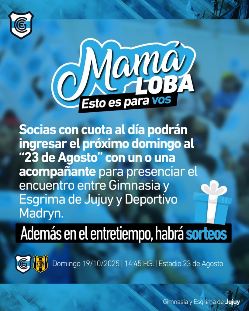 Las socias con la cuota al día podrán ingresar este domingo al estadio 23 de Agosto con un o una acompañante para disfrutar del partido entre Gimnasia y Esgrima de Jujuy y Deportivo Madryn.