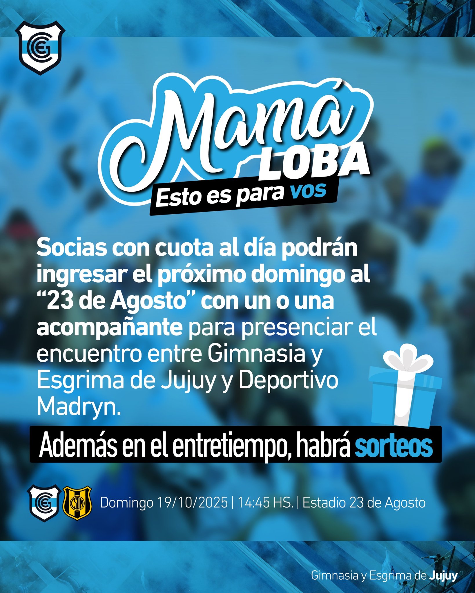 Las socias con la cuota al día podrán ingresar este domingo al estadio 23 de Agosto con un o una acompañante para disfrutar del partido entre Gimnasia y Esgrima de Jujuy y Deportivo Madryn.
