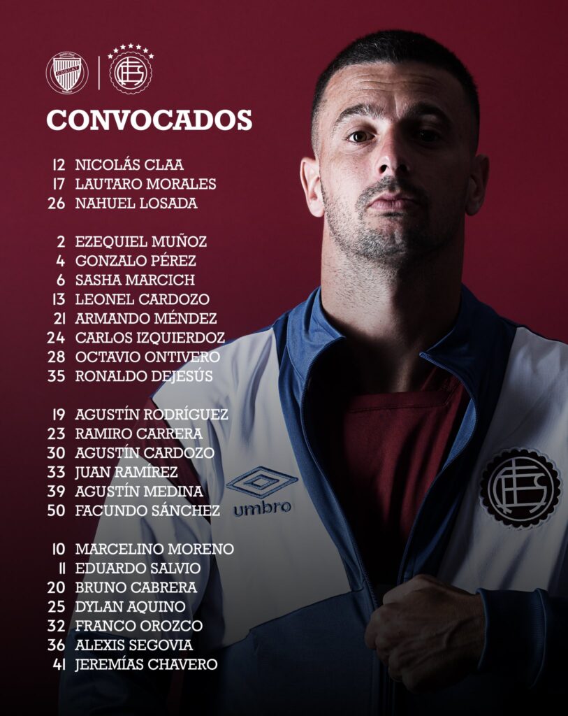 Lanús: Nahuel Losada; Gonzalo Pérez, Carlos Izquierdoz, Ezequiel Muñoz, Sasha Marcich; Agustín Medina, Agustín Cardozo, Eduardo Salvio, Marcelino Moreno, Dylan Aquino; Bruno Cabrera.