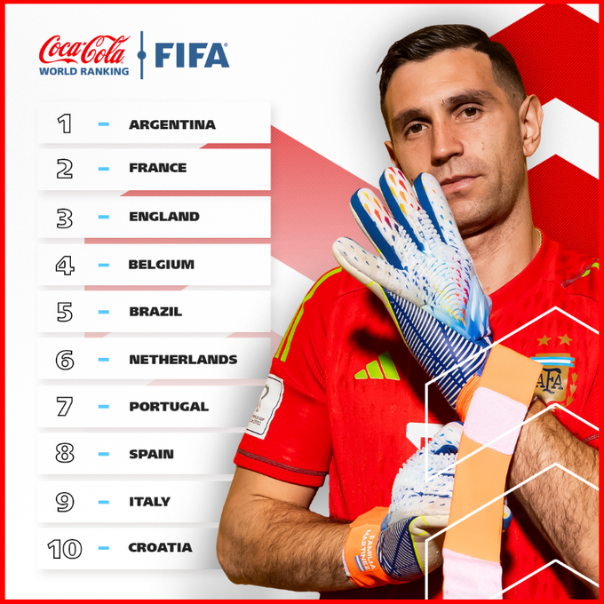 El campeón en la última #CopaMundialFIFA sigue en lo más alto del #FIFARanking 🤩 pic.twitter.com/aiDVM6HB86